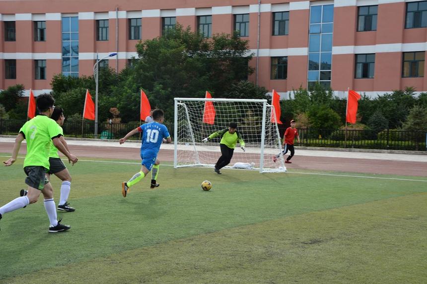 首轮,身着蓝色球衣的区法院代表队迎战人社局代表队,开场不久,双方代表队便展开了激烈的拼搏,斜插、传球、虚晃、直捣腹地、脚起球落、应声入网,一连串动作行云流水,区法院代表队开场领先。而后,双方进入对攻状态,门将左扑右挡,力保城门不失,最终,比分被锁定在8:0,区法院代表队首战完胜。